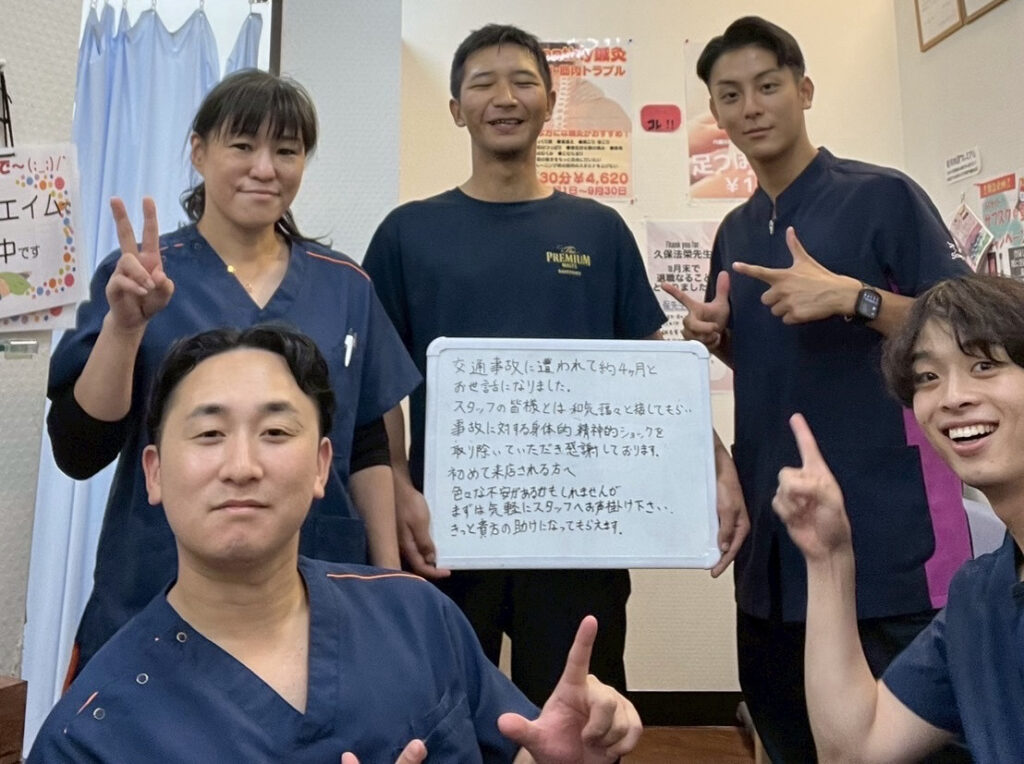 自賠責保険の手続きについても、専門のスタッフが丁寧にサポートいたしますので、安心して治療に専念していただけます。面倒な保険会社とのやり取りもお任せください。