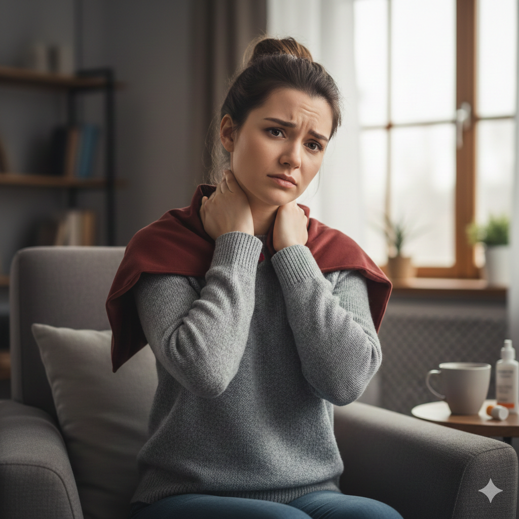 首まわりが硬くなると、肩こり・頭痛・眼精疲労・睡眠の質の低下など、