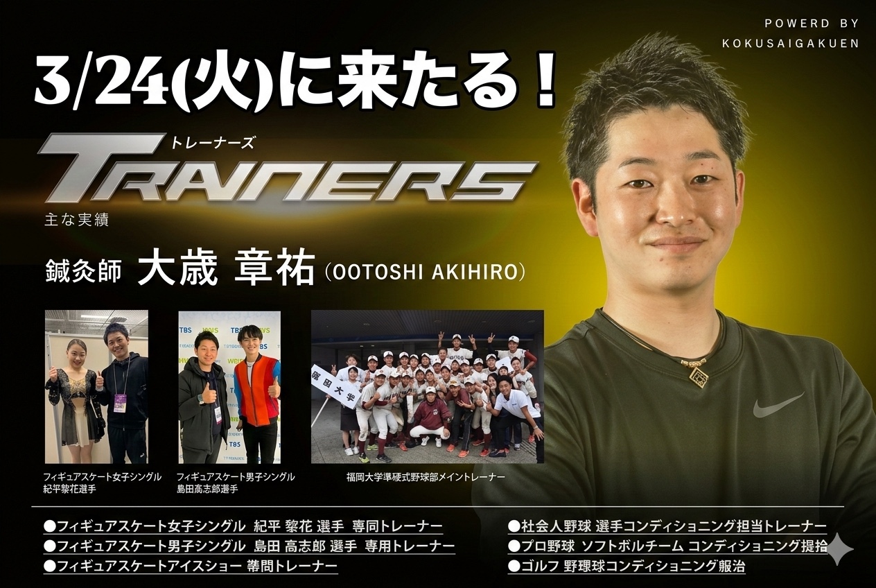 さらに当院では、月に一度、全国で活躍するスポーツトレーナー・大歳章祐先生による特別施術日を設けております。
